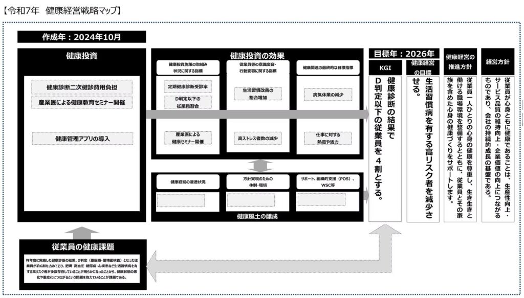 健康宣言は健康経営に取り組むことを会社の内外に発信(宣言)し、協会けんぽと連携して社員とその家族の健康の保持・増進のために毎年度、重点施策を決め社員全員で取り組むことを宣言するものです。