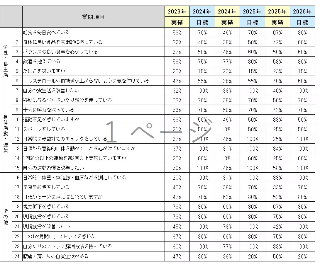 - 運動奨励活動として「あいち健康プラス」「Upmind」のアプリを導入し歩数や健康管理を行っています